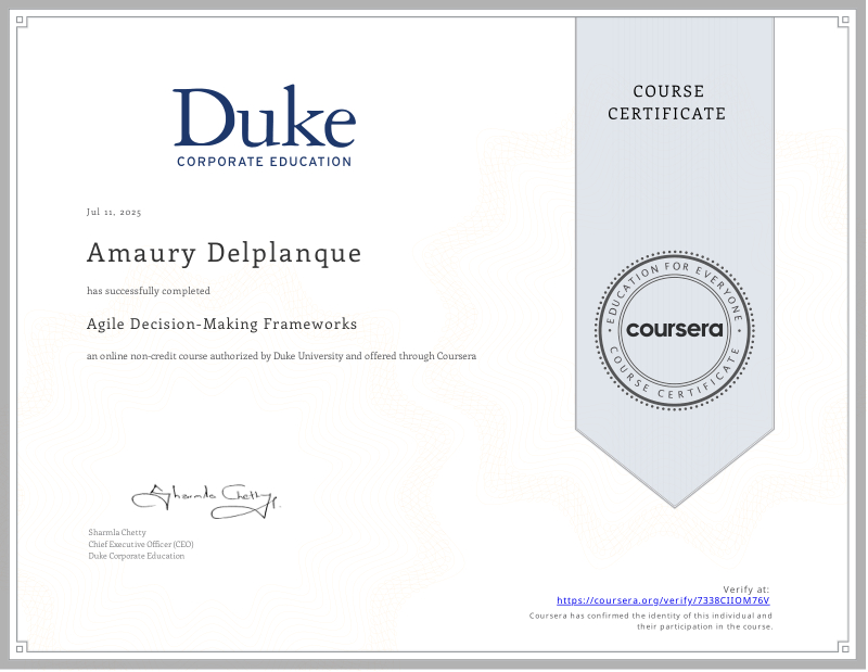 Ce qui m’intéresse ici, ce sont les repères pour tenir ensemble vitesse, risque, information incomplète et responsabilité de décision. Le cours éclaire aussi un point souvent sous-estimé : la qualité d’une décision dépend beaucoup du cadre collectif dans lequel elle est prise, pas seulement de l’intelligence individuelle des décideurs.