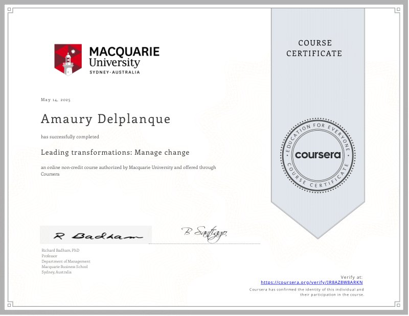Pour moi, l’apport est direct. Cela renforce ma capacité à aider un COMEX à regarder la transformation telle qu’elle se vit vraiment, pas telle qu’elle se présente dans les slides. Et cela me donne des points d’appui pour travailler à la fois la trajectoire, les résistances et les conditions d’apprentissage collectif.