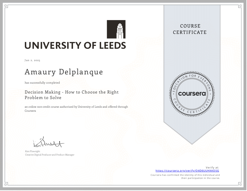 Cours : Decision Making – How to Choose the Right Problem to Solve