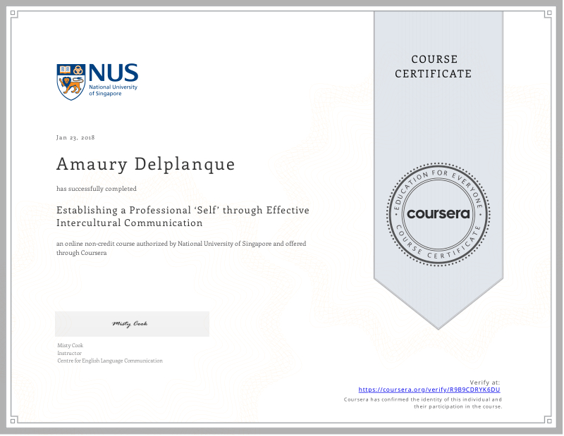 Cours : Establishing a Professional ‘Self’ through Effective Intercultural Communication